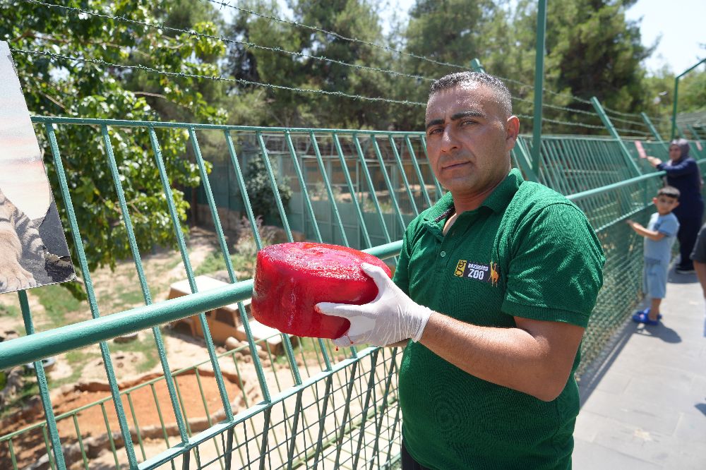 Gaziantep Büyükşehir Belediyesi Doğal Hayatı Koruma Daire Başkanı Celal Özsöyler, aşırı sıcaklardan bunalan ve barınaklarındaki havuzlarda vakit geçiren hayvanların bakıcıları tarafından dondurulmuş et ve buzlu meyve kokteylleri ile serinletildiğini söyledi. Aslan, kaplan ve ayı gibi yırtıcı hayvanlara dondurulmuş et kokteyli verdiklerin, filleri, deve ve zebra gibi hayvanları da özellikle aşırı sıcak saatlerde su hortumları ile serinlettiklerini bildiren Özsöyler, son günlerde havaların iyice ısınması ile hayvanlar için özel tedbirler aldıklarını belirtti.