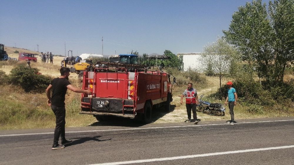 Isparta'nın Yalvaç ilçesi Bağkonak köyünde çıkan yangında yaklaşık 30 dönüm tarım arazisi zarar gördü.