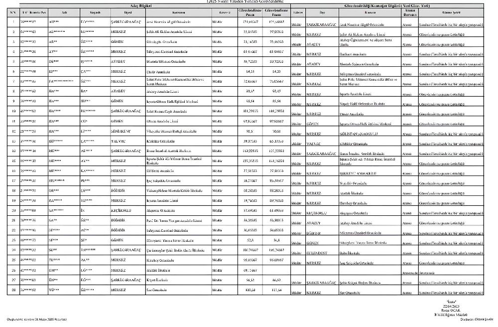 İŞTE YENİ GÖREVLENDİRME LİSTESİ