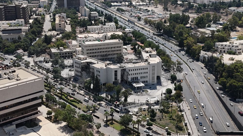 Suriye'nin başkenti Şam'daki Genelkurmay Başkanlığı binasında İsrail saldırılarının yol açtığı hasar havadan görüntülendi.