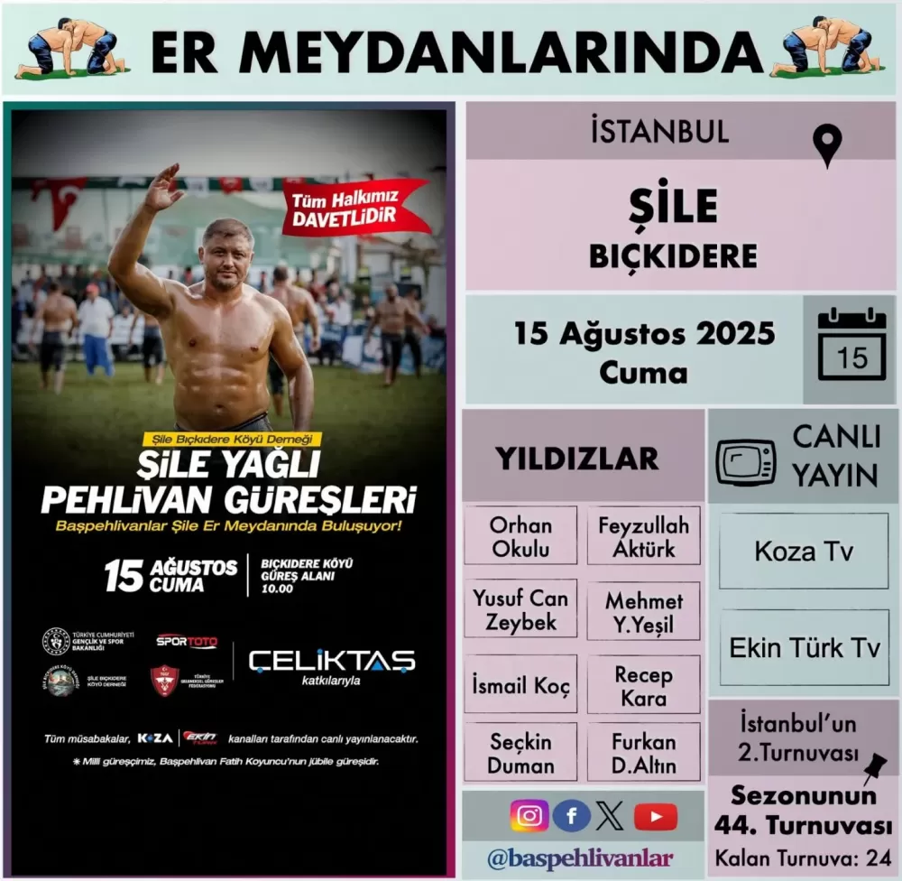 Ayrıca, milli güreşçi ve başpehlivan Fatih Koyuncu, Şile Bıçkıdere Güreşleri’nde jübile müsabakasına çıkacak.