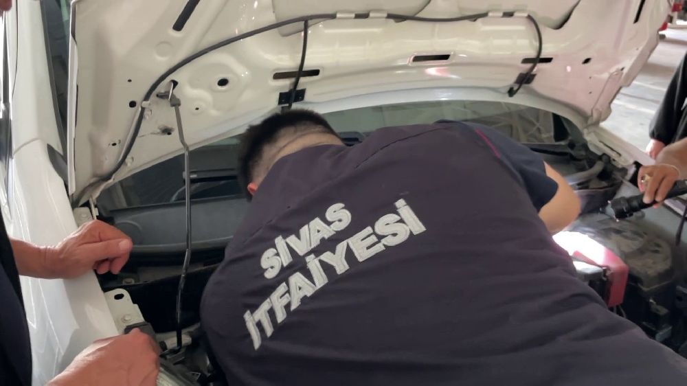 Sivas'ta aracından gelen sesi fark eden vatandaş, itfaiye istasyonuna gelerek ekiplerden yardım istedi. Motor kısmına sıkışan kedi, uzman ellerin müdahalesiyle çıkartıldı.