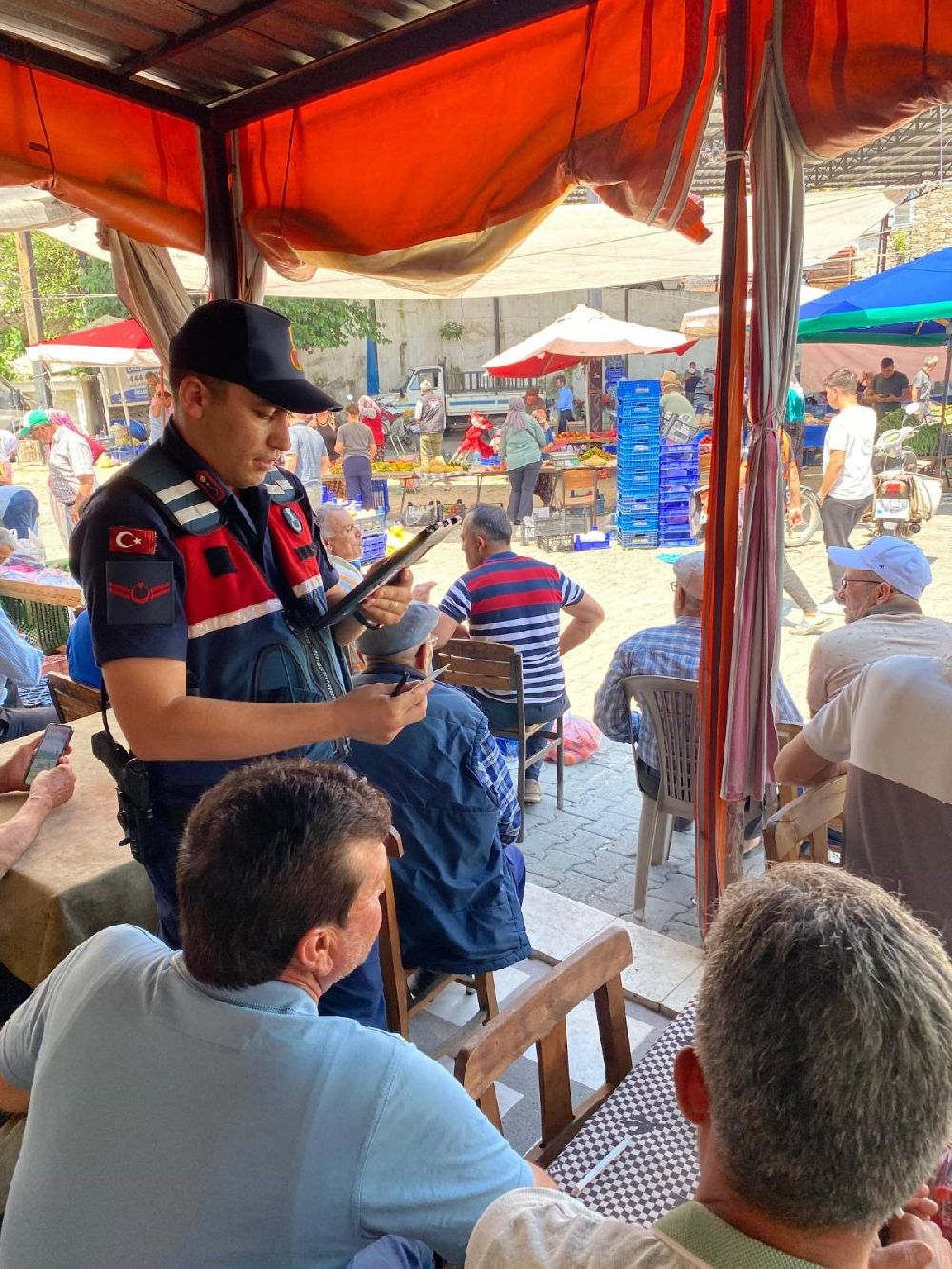 Karpuzlu İlçe Jandarma Komutanlığı tarafından Karpuzlu Tekeler Mahallesi’nde Mahalle Meydanı’nda kurulan seyyar Pazaryeri kontrol edildi. Pazara gelen vatandaşlara dolandırıcılık, sahte para ve hırsızlık gibi olaylara karşı alınacak tedbirler konusunda bilgilendirme yapıldı.
