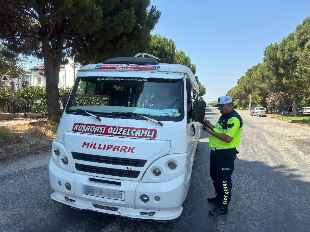 Kuşadası İlçe Jandarma Komutanlığı Trafik Jandarması tarafından toplu taşıma araçlarının karışmış olduğu trafik kazalarının önlenmesi amacıyla Kuşadası ilçesi merkezinden Güzelçamlı Mahallesi’ne yolcu taşıyan minibüslere sivil Jandarma personel tarafından belli bir noktadan binilerek şoför ve yolcular denetlendi. Sivil görevli personel ve kontrol noktasında bulunan ekipler tarafından araç kontrol edilerek sürücülere/yol kullanıcılarına trafik kuralları hakkında bilgilendirme yapıldı.