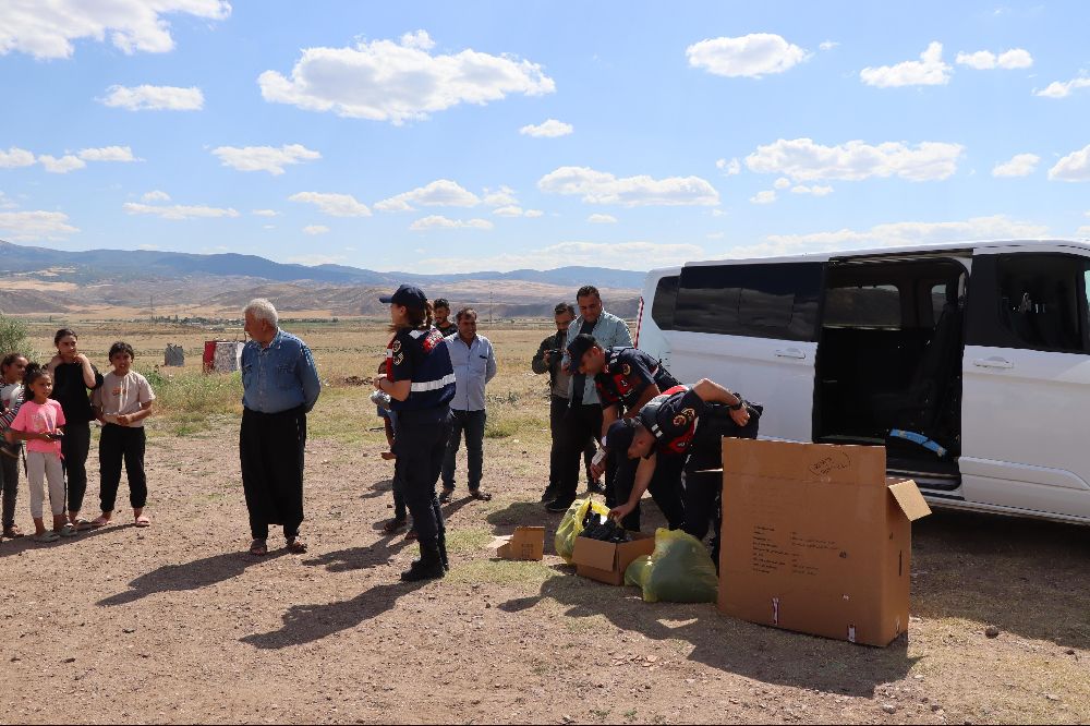 Yozgat’ın Yerköy ilçesine bağlı Sekili mevkiinde, mevsimlik tarım işçilerinin beraberindeki çocukları ziyaret eden Jandarma personeli oyuncak, kıyafet, ayakkabı ve battaniye dağıttı. Etkinlikte çocuklarla sohbet eden ekip, mutlu anlara ortak oldu.
