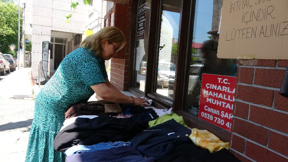 Hayata geçirilen giyim pazarıyla ilgili bilgi veren Muhtar Canan Şahin, "Mahalle halkımızın evlerinde kullanmadıkları ihtiyaç fazlası giysileri muhtarlık bürosunda topladım ve ihtiyaç sahiplerine dağıtmaya başladım. Ancak daha sonra kullanmadığı giysileri getirenlerin sayısı arttıkça muhtarlık önüne tezgah açtım. Muhtarlık önündeki pazar tezgahına gerek hiç kullanmadıkları gerekse temiz kullanılmış giysileri, ayakkabıları getirip bırakıyorlar. İhtiyaç sahibi olanlar da kimseye bir şey sormadan pazardan alışveriş yapar gibi alıp, deneyip beğendiklerini alıp gidiyorlar. İlk zamanlarda sadece mahalle sakinleri faydalanırken şimdi yardım edenlerde, ihtiyacı için alanlar da il geneline yayıldı. Biz de bu durumdan son derece memnunuz. Bu gidişler bir alışveriş dükkanı da açabiliriz" dedi.