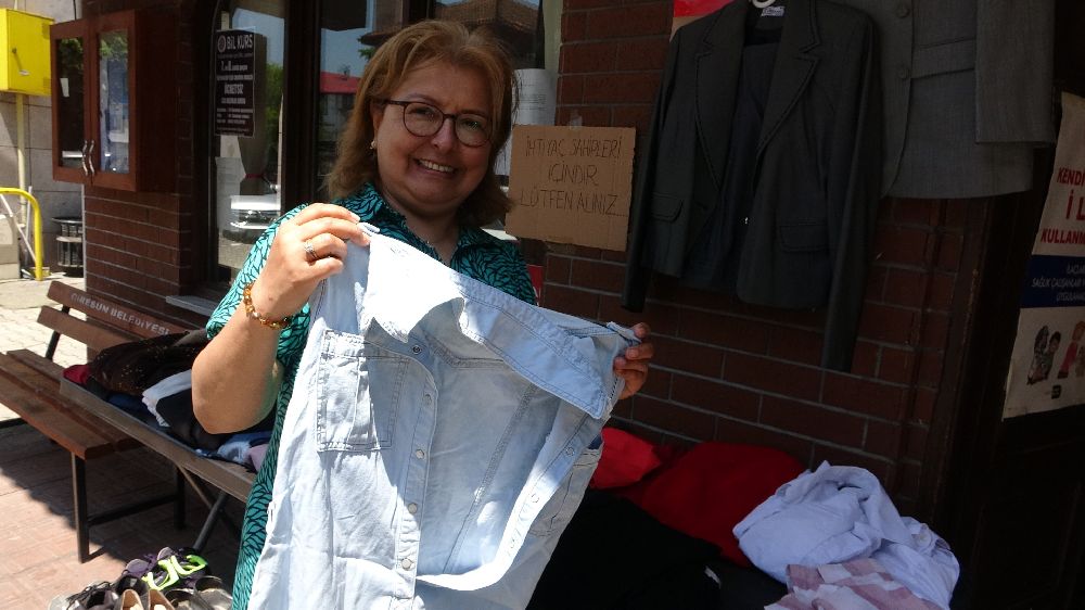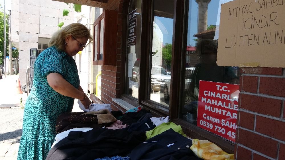 Giresun'un Çınarlar mahallesi muhtarı Canan Şahin, mahalledeki ihtiyaç sahibi aileler için giyim pazarı projesini hayata geçirdi.