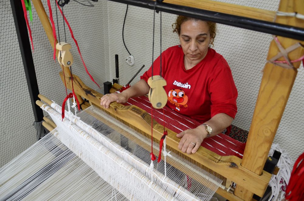 5 yıldır dokuma yaptığını belirten Sadet Savcı da "Ben ayakkabı bağcığını ilk defa burada gördüm. Normalde savanlar dokuyorduk, sofralar, masa örtüleri, kilim yapıyordum. Buraya geldiğimde ayakkabı bağcıklarıyla karşılaşınca dedik 'olur mu, olmaz mı? Deneyelim' dedik" diye konuştu.