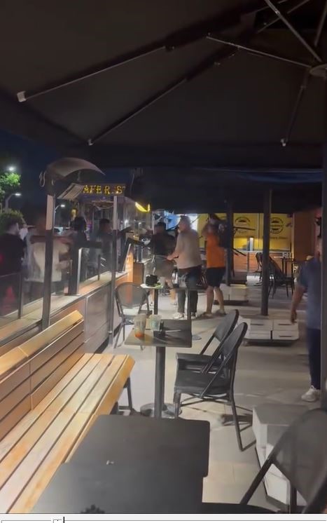 Tekme ve yumrukların havada uçuştuğu kavgada, bazı şahısların birbirlerine sandalye ve masa fırlattığı görüldü.