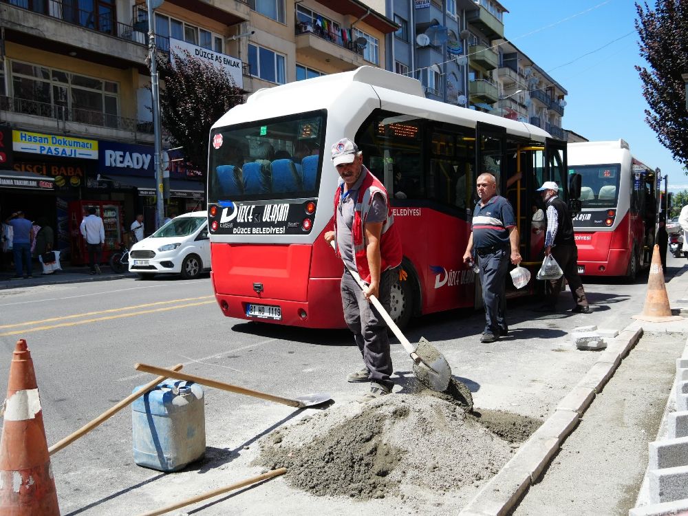 Düzce Belediyesi Fen İşleri Müdürlüğü ekipleri yağışlar sonrasında bozulan kaldırımlarda düzenleme çalışmalarına başladı.