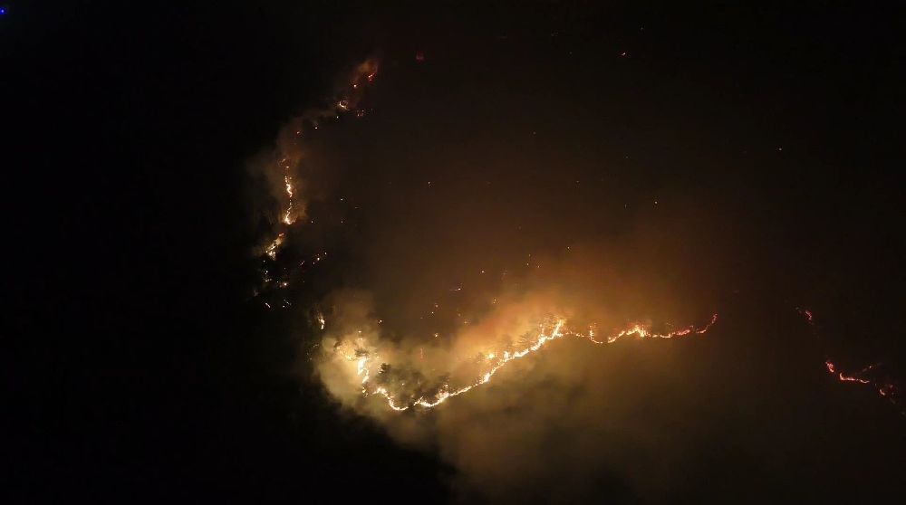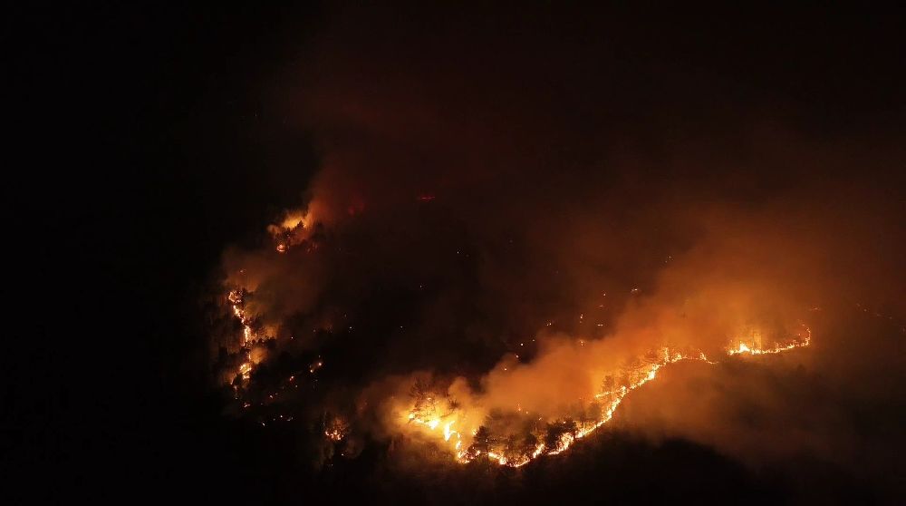 Karabük'te geceyi aydınlatan orman yangını böyle görüntülendi