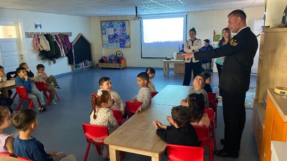 Kemer Sahil Güvenlik Komutanlığı 2. Komutanı Batuhan Günal ve Astsubay Çavuş Şenol Bilgican, Kemer Belediyesi’nin yer tahsisiyle hayırseverler tarafından yaptırılarak eğitime kazandırılan Ülker-Orduvar Akman Kreş ve Gündüz Bakımevin’nde eğitim alan öğrencilere denizlerle ilgili bilgi verdi. Minik öğrenciler, Günal ve Bilgican’ın anlattığı denizlerin önemi, denizde yaşayan canlılar ve canlıların korunması, denizlerin temiz tutulması gibi konuları ilgiyle dinleyerek merak ettikleri soruları sordu.