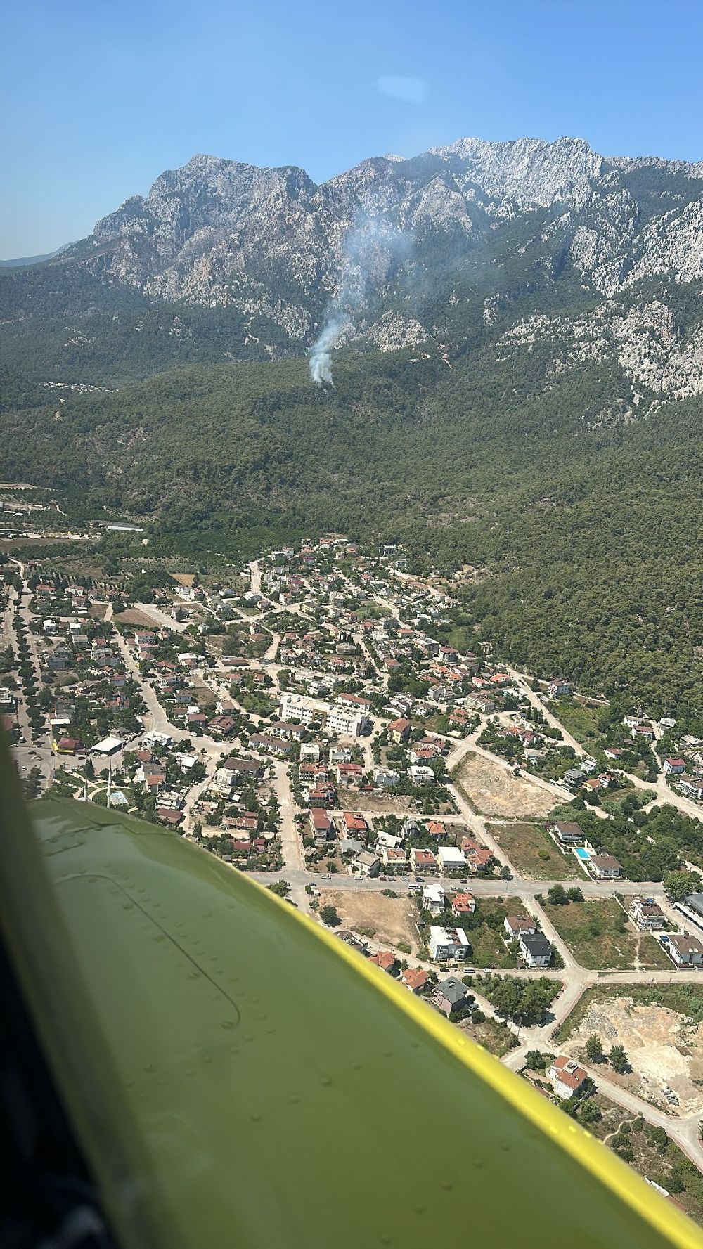 Antalya'nın Kemer ilçesinde çıkan orman yangınına havadan ve karadan müdahalede bulunuluyor.