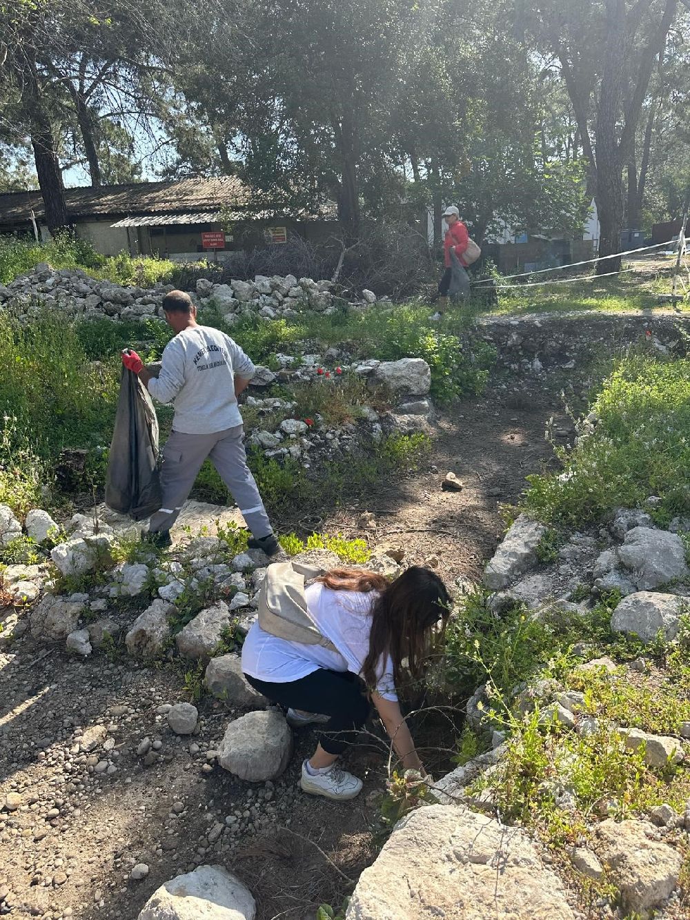 Kemer’de yaşayan yabancı uyruklu kadınlar, Kemer Belediyesi Temizlik İşleri Müdürlüğü ve İklim Değişikliği ve Sıfır Atık Müdürlüğü ekipleri ile Çalış Tepesi ile Ayışığı Parkı arasında bulunan koy ve ormanlık alanda temizlik yaptı.