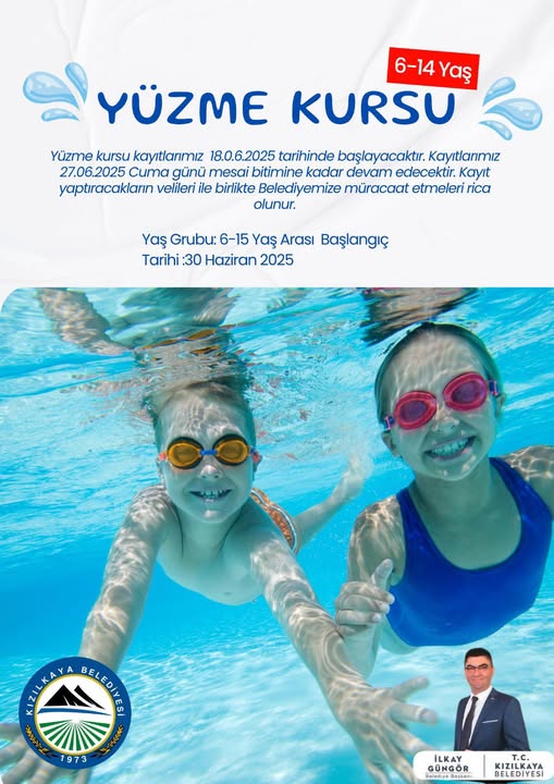 Kızılkaya Belediye Başkanı İlkay Güngör tarafından yapılan açıklamada, " Yüzme kursu kayıtlarımız, 18.06.2025 tarihinde başlayacaktır. Kayıtlarımız 27.06.2025 Cuma günü mesai bitimine kadar devam edecektir. Kayıt yaptıracakların velileri ile birlikte Belediyemize müracaat etmeleri rica olunur. " ifadelerine yer verildi.