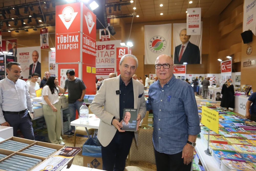 Kepez Belediye Başkanı Mesut Kocagöz, Kepez Kitap Fuarı'nın 3'üncü gününde de fuar alanını ziyaret etti. Yayın evlerini tek tek dolaşan Başkan Kocagöz, stantlardaki kitapları inceledi, yazarların imza günlerine katıldı ve onlarla samimi sohbetler gerçekleştirdi. Fuarı ziyaret eden vatandaşlarla da birebir görüşen Başkan Kocagöz, fuarla ilgili memnuniyetlerini dinledi. Başkan Kocagöz, Antalya'nın eski belediye başkanlarından Hasan Subaşı'nı imza gününde ziyaret etti. Fuarda Antalya'nın kıymetli isimlerinin yer almasından duyduğu memnuniyeti dile getiren Başkan Kocagöz, bu buluşmanın kendisi için anlamlı olduğunu belirtti. Hasan Subaşı da "Dar Alanda Siyaset" adlı kitabını Başkan Kocagöz için imzaladı.