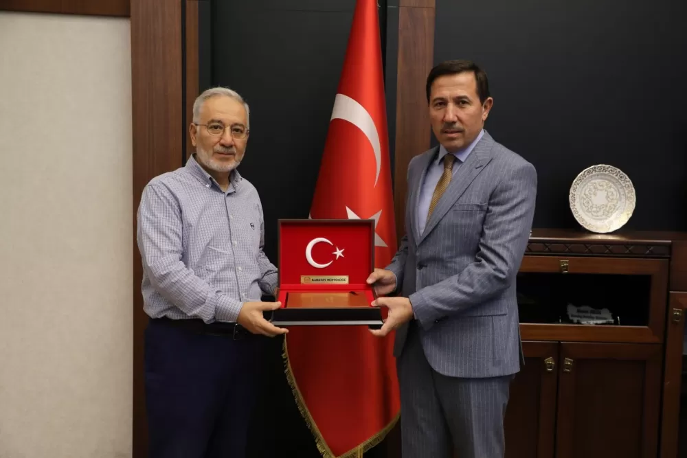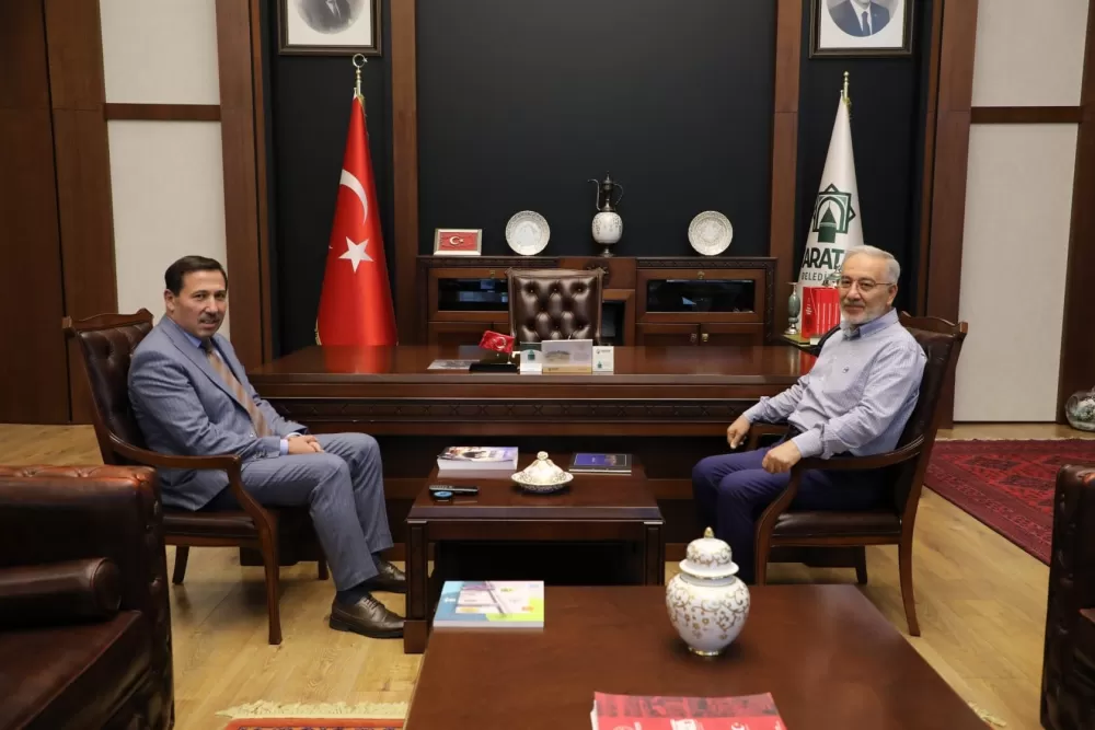 Konya Karatay İlçe Müftüsü Halil Taş, Karatay Belediye Başkanı Hasan Kılca’yı makamında ziyaret etti. Ziyarette, ilçede yürütülen din hizmetleri ile eğitim faaliyetleri ele alındı; karşılıklı görüş alışverişinde bulunuldu.