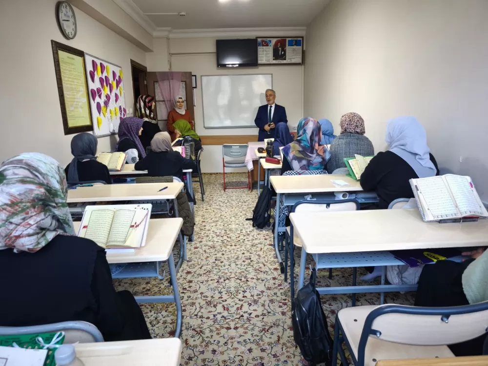 Kur’an kursu müştemilatında gerçekleştirilen programa Karatay İlçe Müftüsü Halil Taş, eşi Vaiz Ayşe Hilal Taş ve Dernek Başkanı Abdullah Acıbadem katıldı.