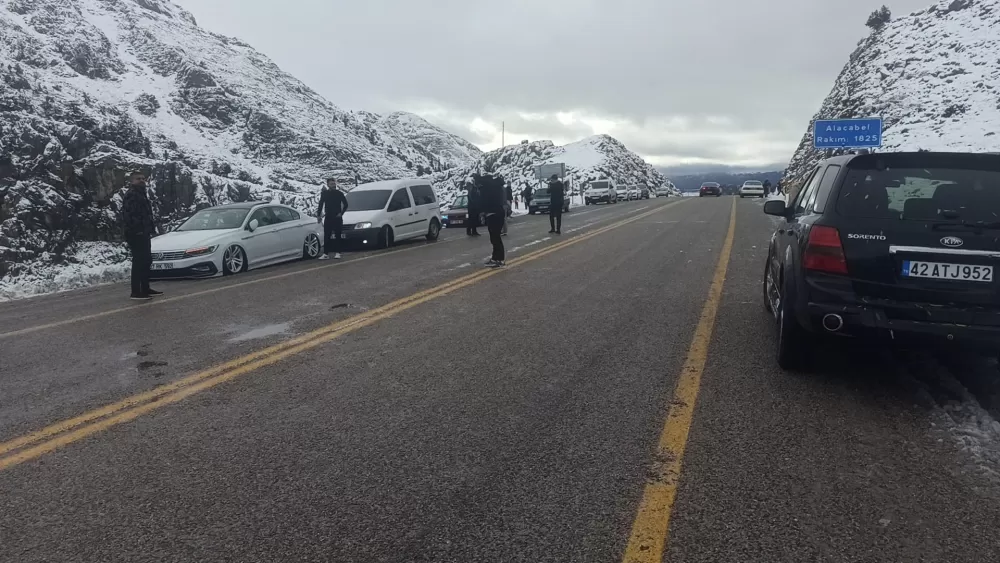Konya’nın Seydişehir ilçesinde dün akşam saatlerinde etkisini gösteren yağmur, yüksek kesimlerde yerini kar yağışına bıraktı. Vatandaşlar, hafta sonu yağan karı görmek için Alacabel'e akın etti.