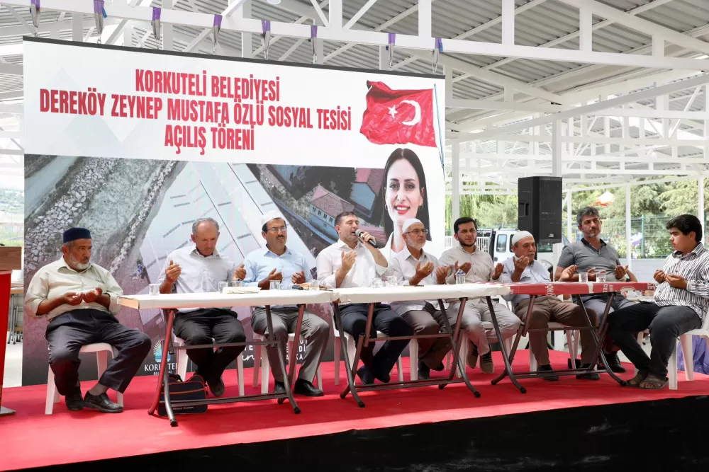 Korkuteli Belediyesi tarafından yapımı tamamlanan Dereköy Zeynep Mustafa Özlü Sosyal Tesisi düzenlenen törenle hizmete açıldı. Düğün, mevlit ve farklı organizasyonlara ev sahipliği yapacak tesis, çocuk oyun alanları, yürüyüş yolları ve piknik alanlarıyla mahalle halkına modern bir yaşam alanı sundu.