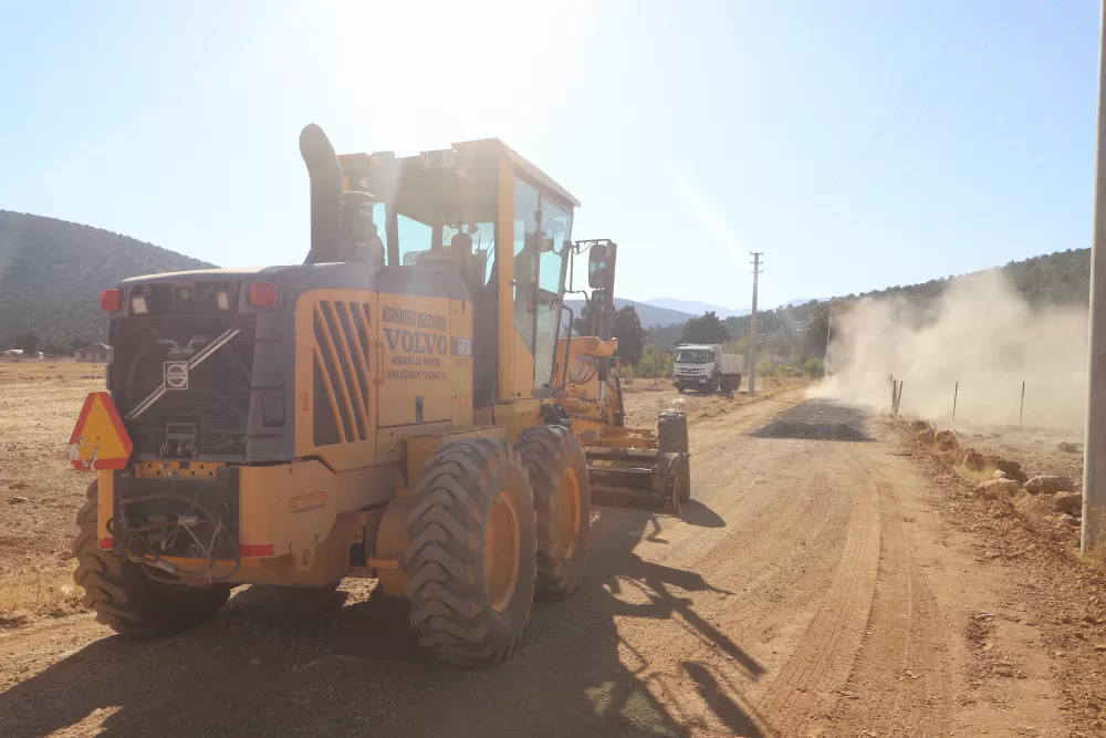 Korkuteli Belediyesi Fen İşleri Müdürlüğü, kırsal mahallelerde ulaşımın daha güvenli ve konforlu hale gelmesi için yol yapım çalışmalarına devam ediyor.