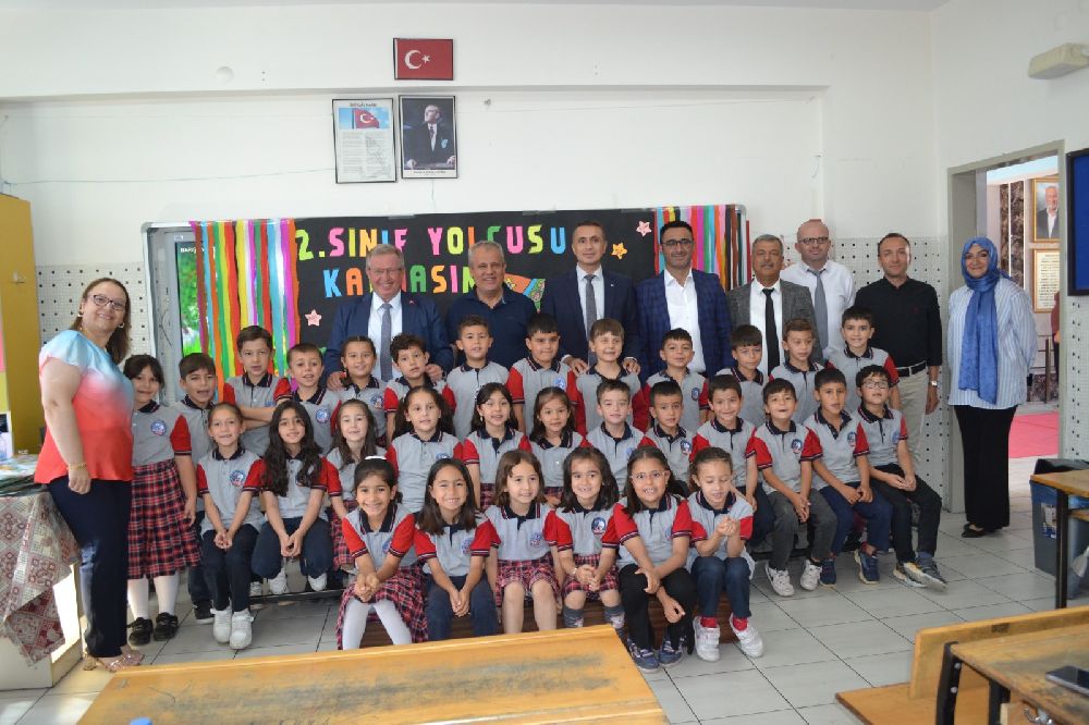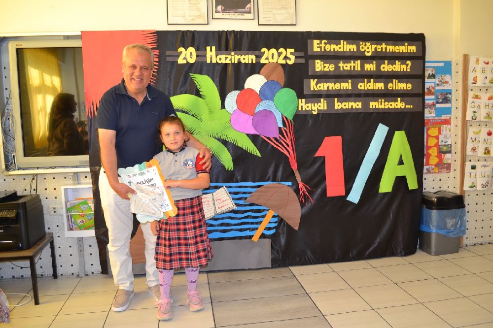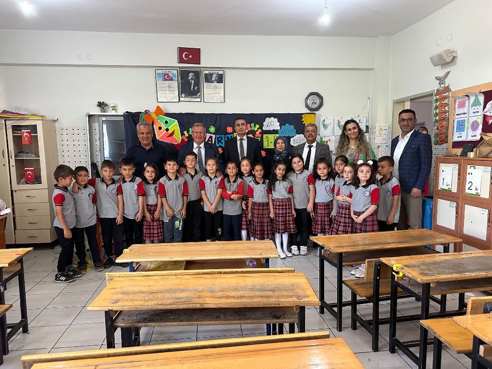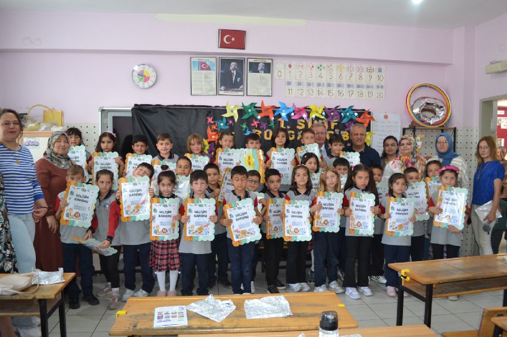 İlçe Milli Eğitim Müdürü İbrahim Canbazoğlu ve şube müdürleri ile birlikte okulu ziyaret eden Önal, Okul Müdürü İsmail Toprak ve okul idarecileri ile sınıfları gezerek öğrencilere karne ve başarılı öğrencilere altın taktı.