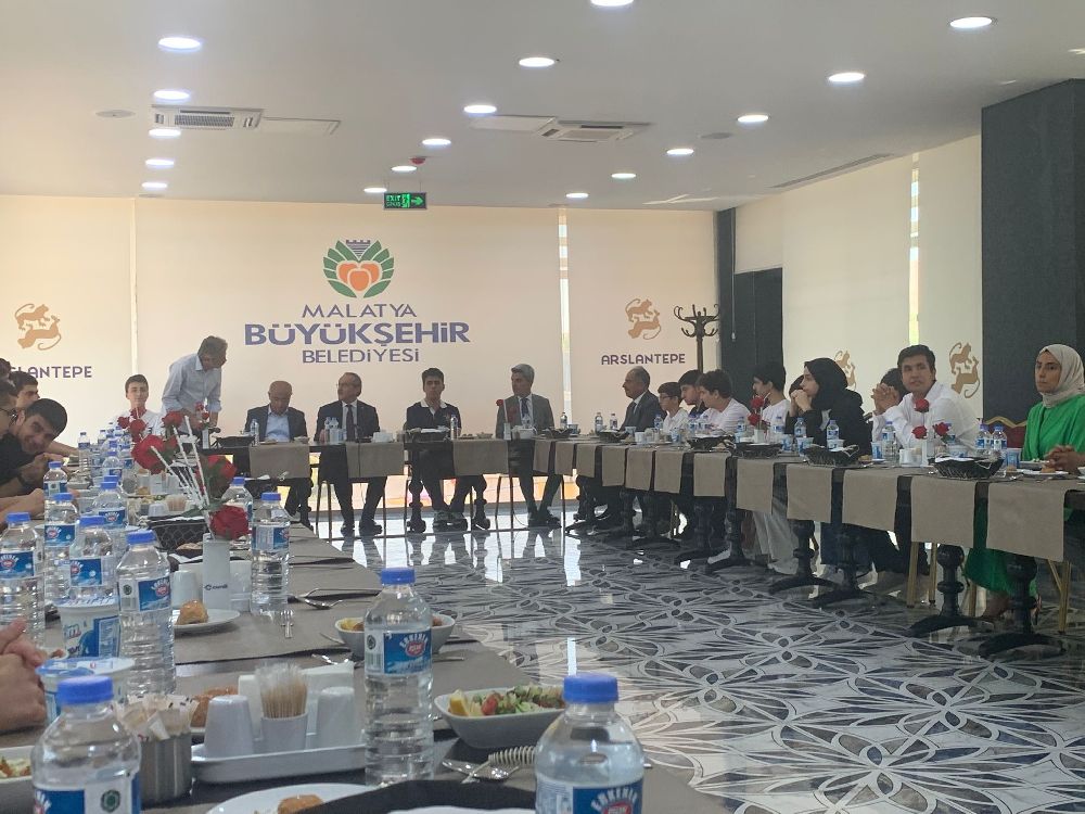 Malatya Büyükşehir Belediyesi’nde düzenlenen öğle yemeğine Malatya Valisi Seddar Yavuz, İl Milli Eğitim Müdürü Behçet Bakır, okul müdürleri ve dereceye giren öğrenciler katıldı. Programda konuşan Vali Seddar Yavuz, Belediye Başkanı Sami Er ve İl Milli Eğitim Müdürü Behçet Bakır, öğrencileri tebrik ederek başarılarının devamını diledi.