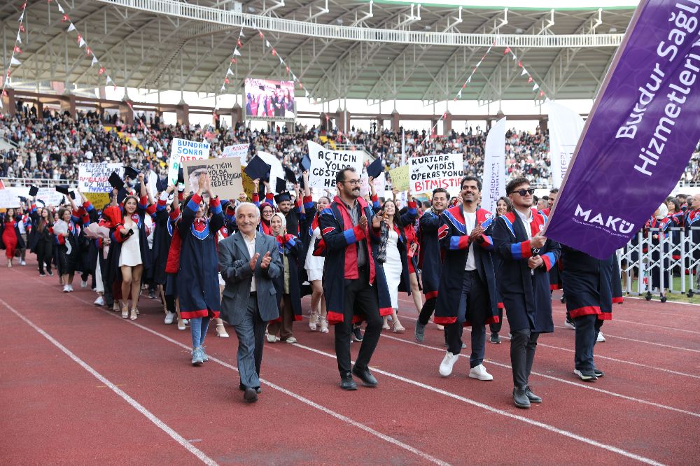 Ardından kutlamalar MAKÜ İstiklal Yerleşkesi Stadyumu’nda devam etti. Törene Burdur Valisi Tülay Baydar Bilgihan başta olmak üzere Rektör Prof. Dr. Hüseyin Dalgar, protokol üyeleri, üniversite yönetimi, akademisyenler, öğrenciler ve aileleri yoğun katılım gösterdi.
