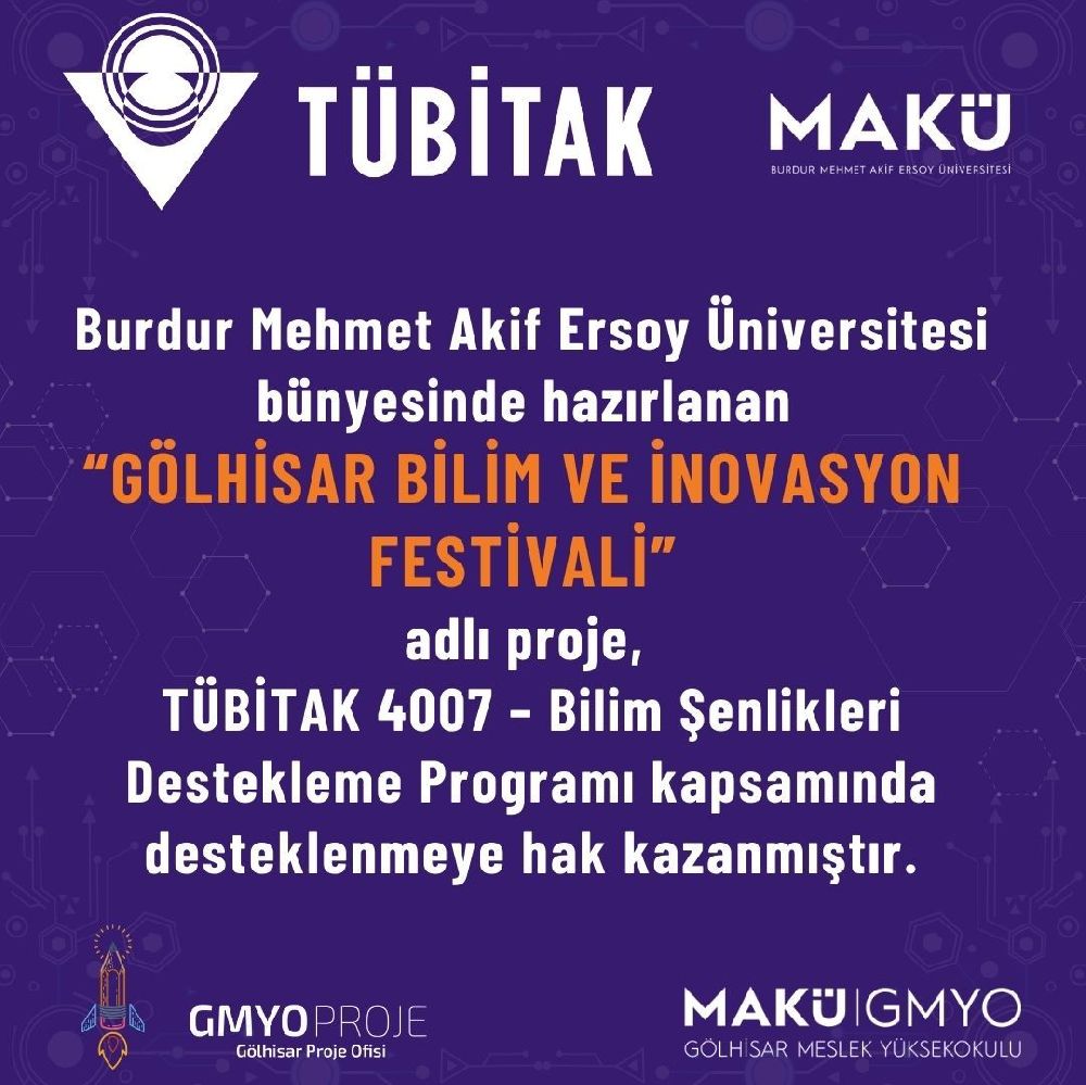 ‘Gölhisar’da Bilim ve İnovasyon Festivali’ projesi, TÜBİTAK tarafından desteklenmeye layık görüldü.