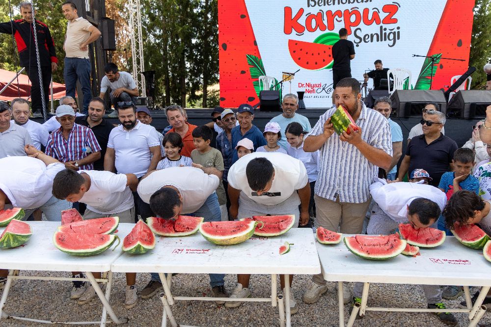 Şenlikte düzenlenen bir diğer renkli etkinlik ise en hızlı karpuz yeme yarışması oldu. Heyecan dolu yarışmanın kazananı Latif Balkan olurken, yarışma alanında hem yarışmacılar hem de izleyenler eğlenceli anlar yaşadı.