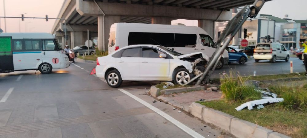 Antalya'nın Manavgat ilçesinde trafik lambalarının çalışmadığı kavşakta iki otomobil çarpıştı. Çarpmanın etkisiyle trafik levhasına çarpan araçtaki sürücü yaralandı.