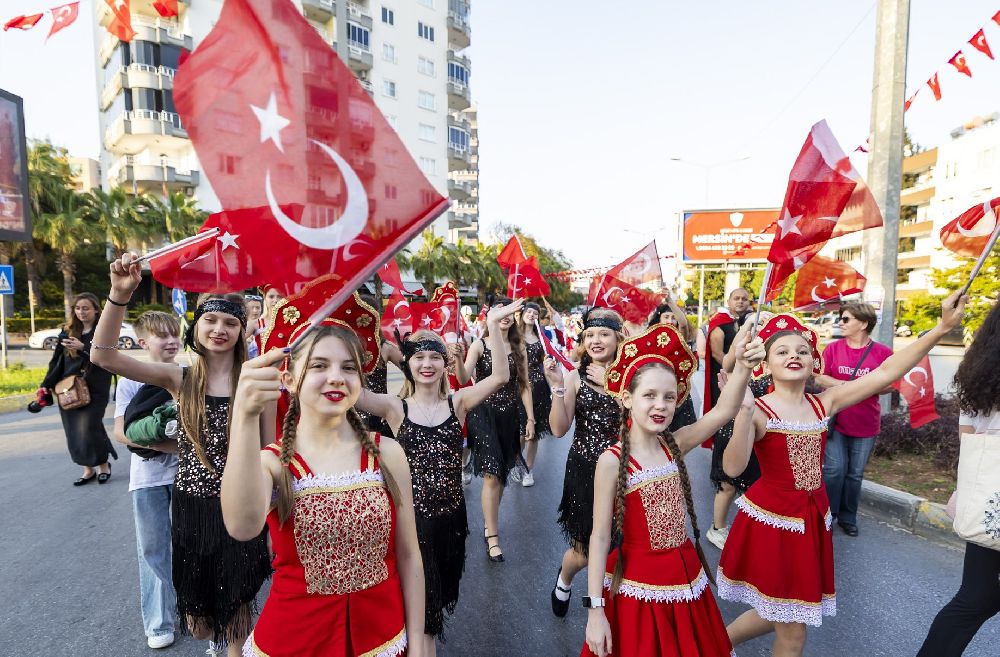 Mersin'de 23 Nisan Ulusal Egemenlik ve Çocuk Bayramı dolayısıyla kortej yürüyüşü düzenlendi. Büyükşehir Belediye Başkanı Vahap Seçer ile eşi Meral Seçer'in eşlik ettiği yürüyüşe çok sayıda çocuk ve vatandaş katıldı.
