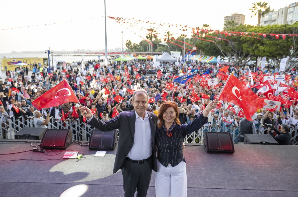Mersinden Kadın Kooperatifi Başkanı Meral Seçer ise "Ulusal Egemenlik Bayramımız kutlu olsun, daha nice güzel bayramlar olsun. Hep birlikte Atatürk'ün bize bıraktığı mirası korumak için çalışmaya devam edeceğiz. Bunu çocuklarımızla birlikte yapacağız"şeklinde konuştu.