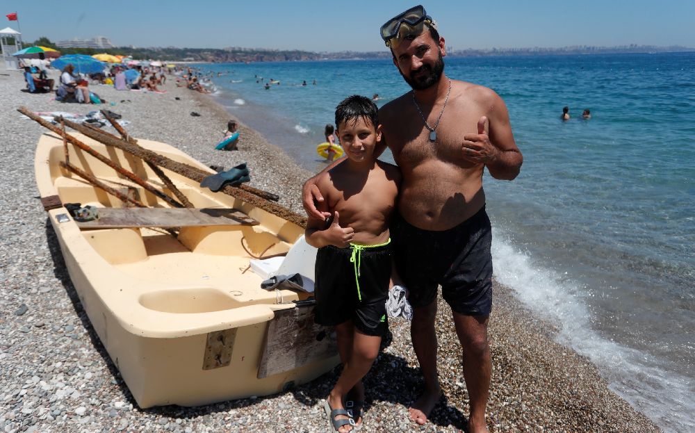 Konyaaltı Sahili'nde pandemi döneminde deniz altından atıkları çıkartmaya başlayan Erhan Uludağ, sahilde temizlik yaptığı sırada karşılaştığı manzara ile hayrete düştü. Uludağ, kıyıya birkaç metre mesafede batık halde karşılaştığı kayığı kıyıya çıkardı.