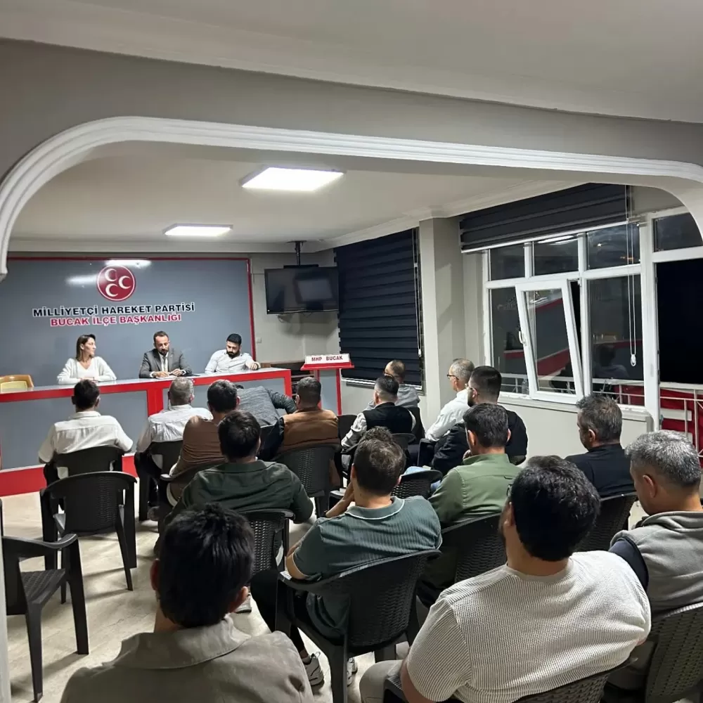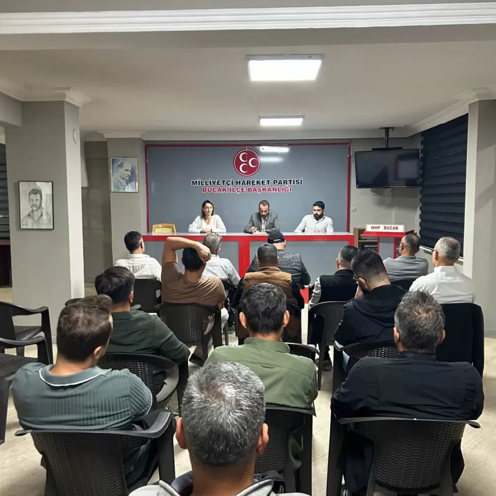 MHP Bucak İlçe Başkanlığı tarafından yapılan açıklamada, " Milliyetçi Hareket Partisi Bucak İlçe Başkanlığı olarak, yeni dönemin ilk yönetim kurulu toplantımızı büyük bir kararlılık ve azimle gerçekleştirdik. Toplantımızda; ilçemizin sorunlarını, hemşehrilerimizin beklentilerini ve davamızın geleceğine dair stratejilerimizi istişare ettik.