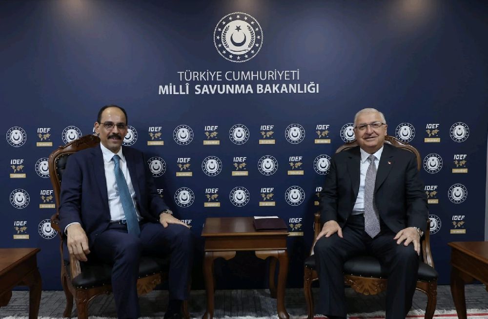 Milli Savunma Bakanı Yaşar Güler ile Milli İstihbarat Teşkilatı Başkanı İbrahim Kalın, 17. Uluslararası Savunma Sanayii Fuarı'nda (IDEF 2025) bir araya geldi.