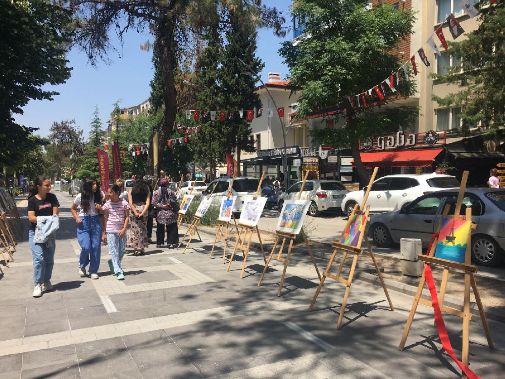 Burdur Merkez İstasyon Caddesi üzerinde açılışı yapılan ‘Her Renk Bir Düş’ adlı Resim Sergisi’ne Liselere Giriş Sınavı (LGS), okulların dönem sonu etkinlikleri ve benzer programlar nedeniyle katılım düşük olurken, görenlerin bir daha görmek istedikleri ve beğendikleri bir sergi olduğunu ifade eden İsmail Merttürk’ün Resim Öğretmeni Merve Sarı; İsmail’in 7 yaşında ve ilk okul 2. sınıfta okumasına rağmen resim yapma kabiliyetinin yanı sıra, çizme yeteneğinin ve el becerisinin de iyi olduğunu söylerken; Annesi Polis Komiseri Emine Merttürk de oğlunun resim yapma kabiliyetinin yaratılıştan gelen bir özellik olduğunu ve İsmail’in 4 yaşından beri resim yaptığını söyledi ve oğullarının bu yeteneğini keşfeden ve yeteneğini geliştirmesine yardımcı olan Resim Öğretmeni Merve Sarı’ya ve serginin açılışına katılan tüm öğretmen ve öğrenci velilerine teşekkür etti.