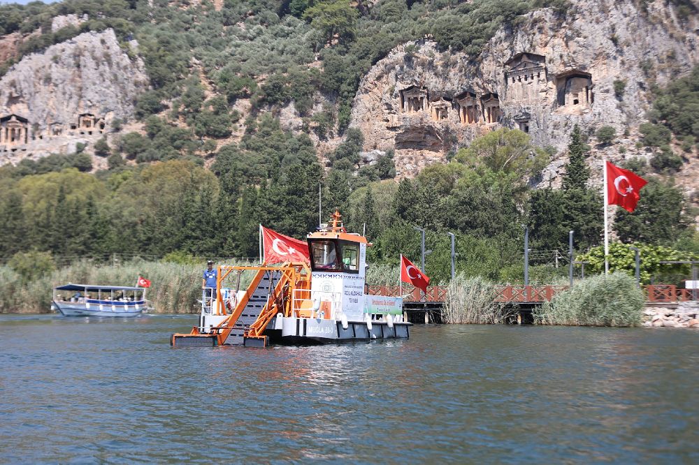 Modern donanımıyla dikkat çeken MUĞLA BB-3, hidrolik konveyör sistemi sayesinde göl ve kanallarda su yüzeyindeki plastik, bitki ve diğer katı atıkları toplayarak temizlik çalışmalarını etkili bir şekilde sürdürüyor; böylece doğal yaşamın korunmasına önemli katkı sağlanıyor.