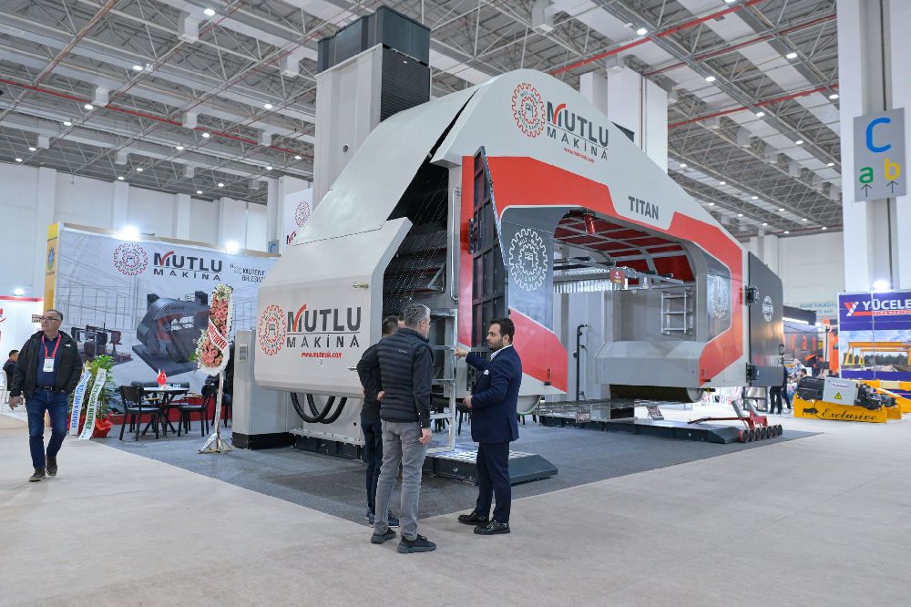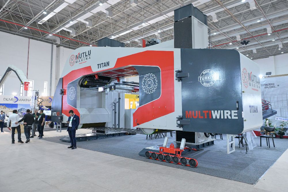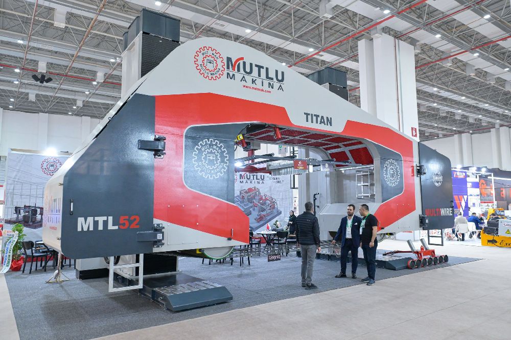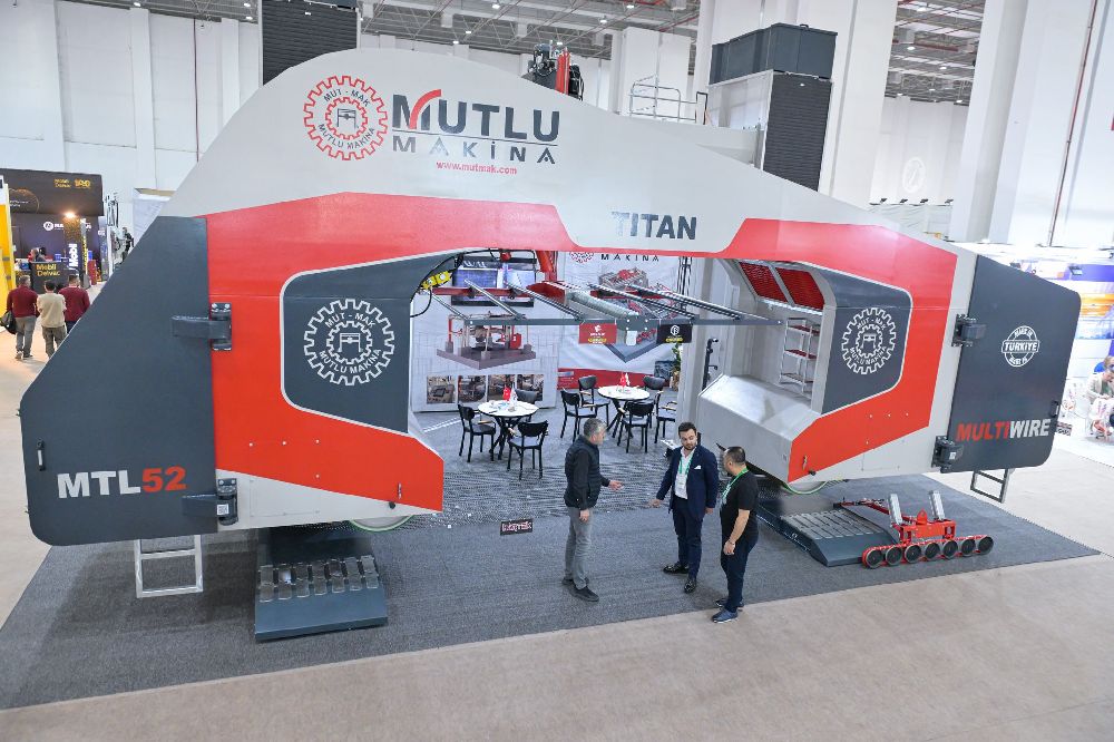 Mutlu Makina'nın fuarda sergilediği Titan serisi Çok Telli Blok Kesme Makinası, mermer ve doğal taş sektöründe ezber bozdu. Titreşimsiz yapısı ve uzun ömürlü tel sistemiyle dikkat çeken bu yeni teknoloji, granit ve mermer bloklardan farklı kalınlıklarda levha üretimi sağlıyor.