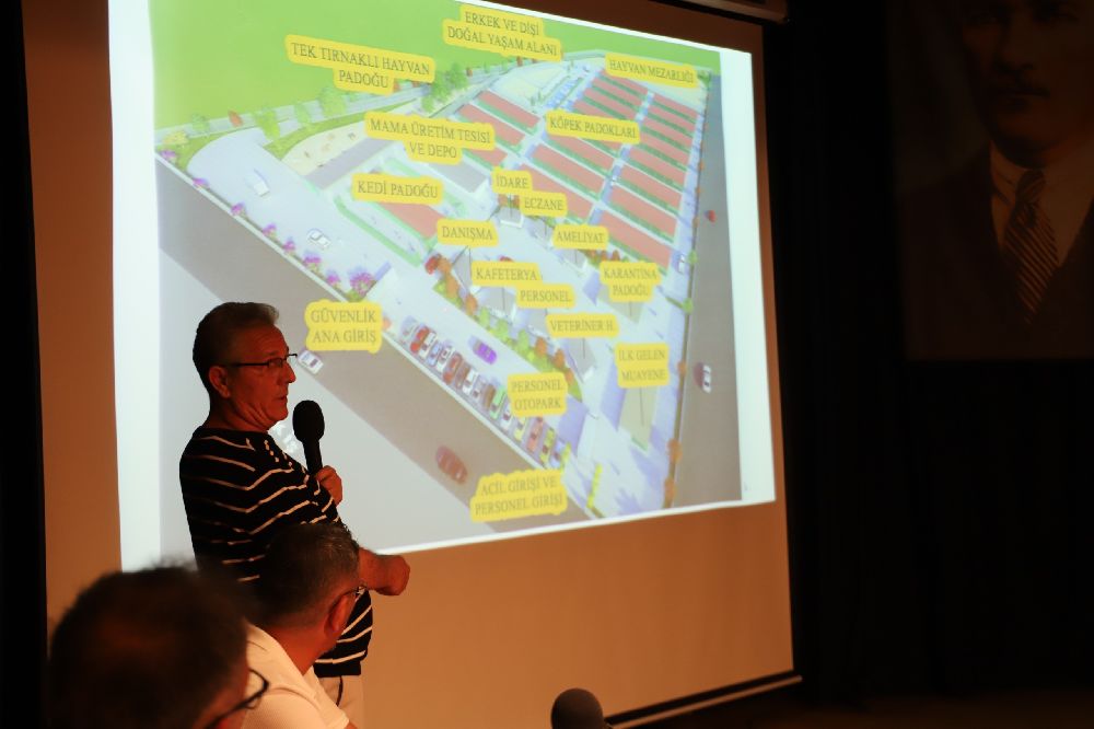 İçerisinde erkek ve dişi doğal yaşam alanı, tek tırnaklı hayvan padoğu, mama üretim tesisi ve depo, eczane, ameliyathane, idari bina, veteriner hekim binası, karantina padoğu, ilk gelen muayene alanı, kafeterya, otopark ile kedi ve köpek padoklarının bulunduğu proje, katılımcılar tarafından büyük ilgi gördü. Projenin tanıtımının ardından soruları yanıtlayan Başkan Tetik, sosyal sorumluluk ve gönüllülük esasına dayanan bir anlayışla, halkın her kesiminden gönüllü sistemleri oluşturarak projenin işleyişinin sağlanacağını dile getirdi. Mama üretim tesisi ve elektrik panelleri ile kendi kendine yetebilen bir sistem oluşturmayı hedeflediklerini kaydeden Başkan Tetik, projenin hayata geçirilmesi için de tüm hayvan severlerden destek istedi.