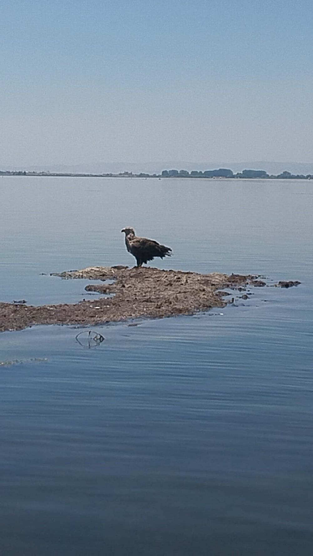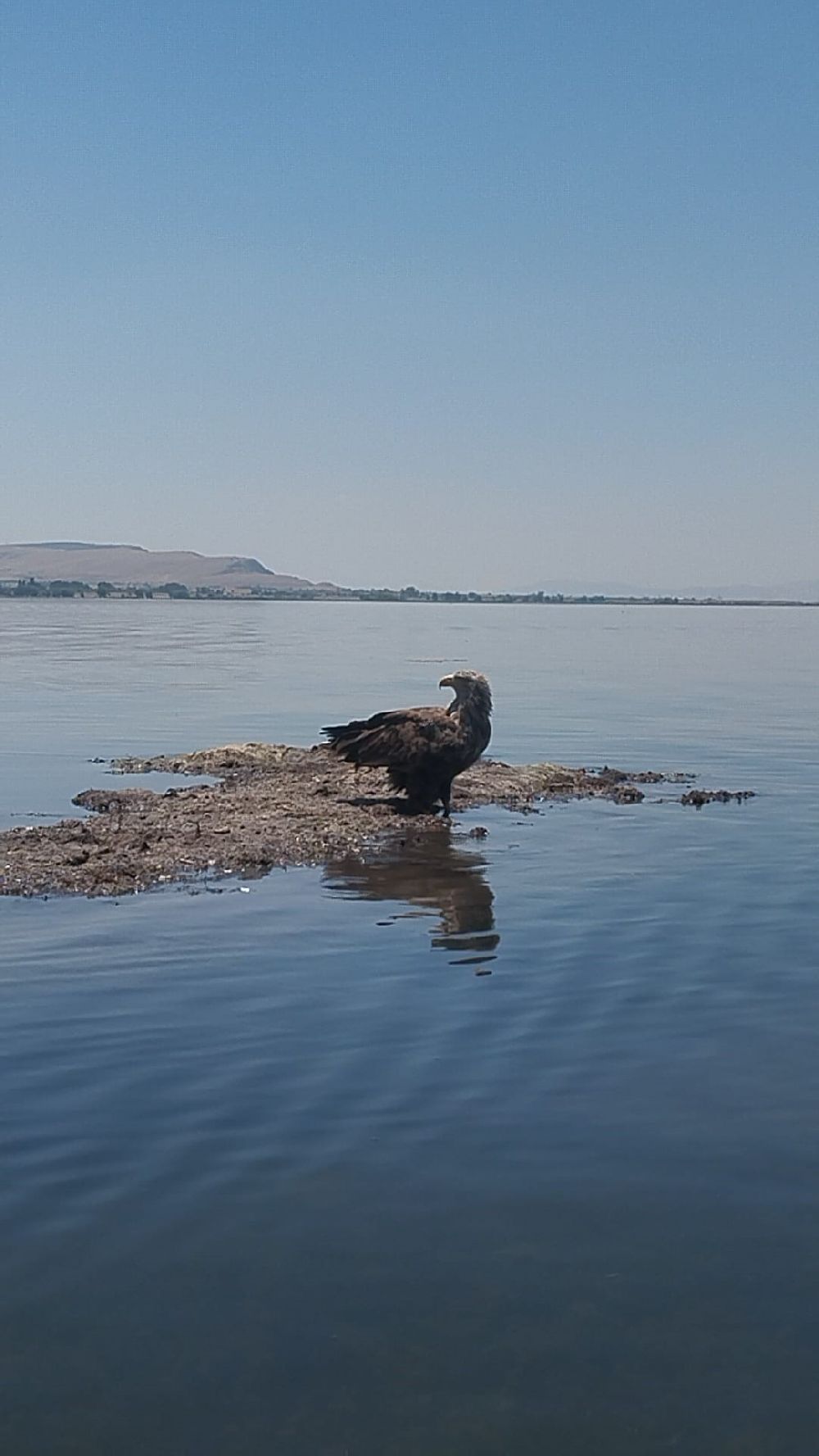 Nesli tükenme tehlikesi altındaki Ak Kuyruklu Kartal, birçok canlıya ev sahipliği yapan Işıklı Gölünde tekne turu yapanlar tarafından görüldü.