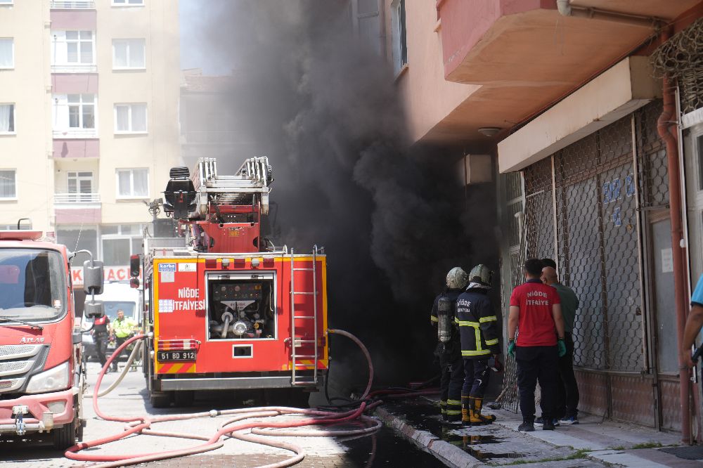 Niğde'de bir iş yerinin deposunda yangın çıktı.