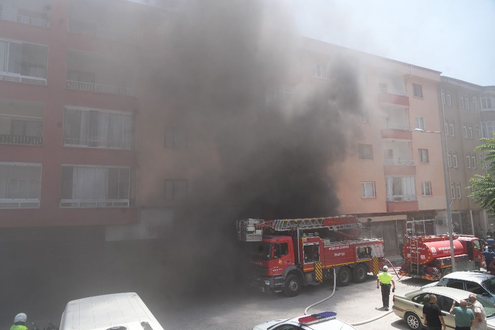 İtfaiye ekipleri yangına müdahale ederken tedbir amacıyla apartman sakinleri tahliye edildi.
