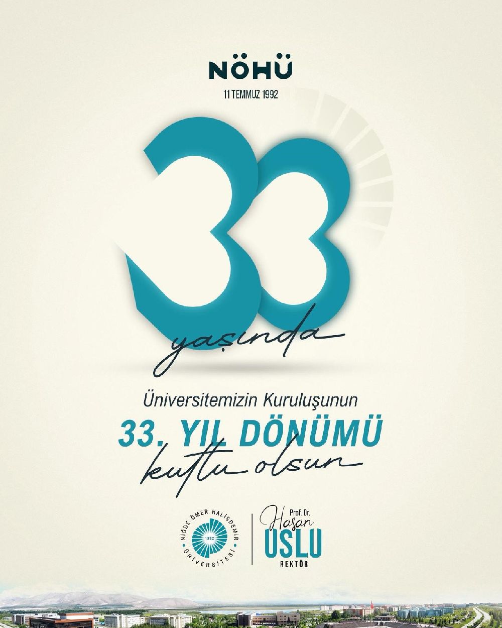 Niğde Ömer Halisdemir Üniversitesi (NÖHÜ) Rektörü Prof. Dr. Hasan Uslu; üniversitenin 33’üncü kuruluş yıl dönümü dolayısıyla yazılı bir mesaj yayımladı.