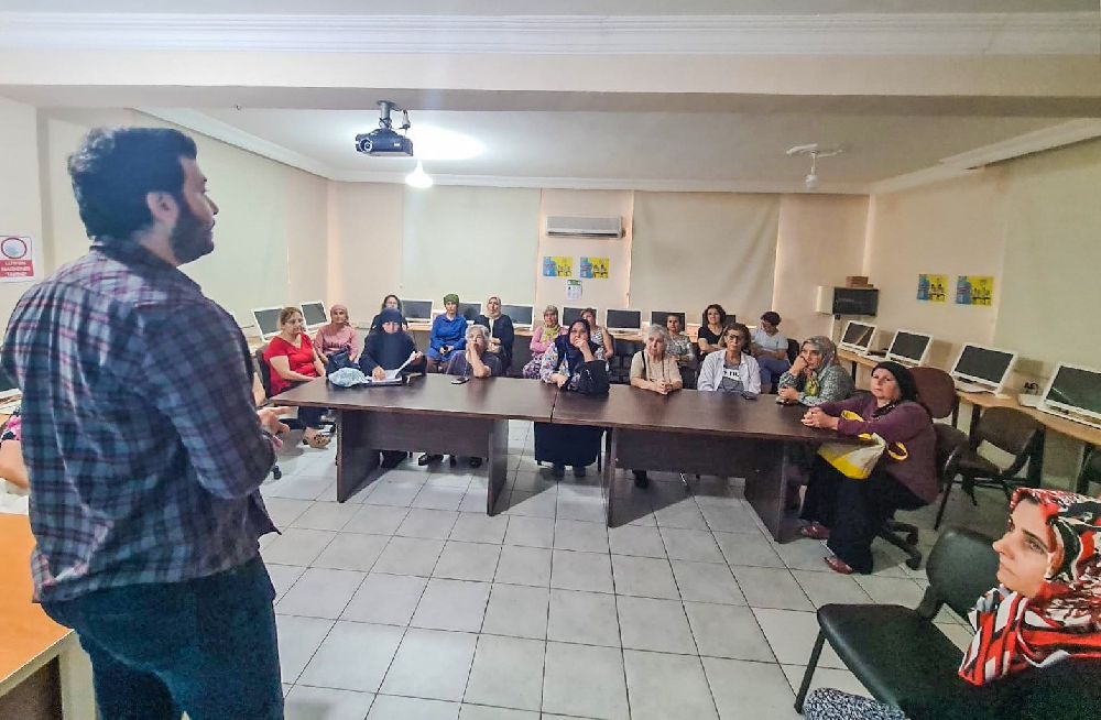 Gazipaşa İlçe Sağlık Müdürlüğü ekipleri tarafından Halk Eğitim Merkezinde görevli öğretmen ve merkezdeki kurslara katılan kursiyerlere “Kanser taraması” eğitimi verildi