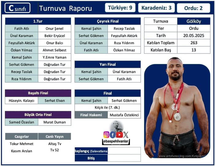 Turnuva sonunda düzenlenen ödül töreninde dereceye giren sporculara madalya ve kupaları takdim edilirken, Kemal Şahin’in ilk başpehlivanlık zaferi izleyicilerden büyük alkış aldı. kaynak başpehlivanlar