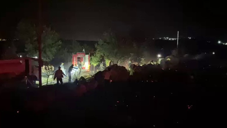 Adıyaman’da, otluk alanda çıkan yangın saman balyalarına sıçradı.