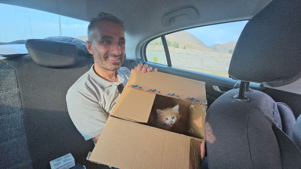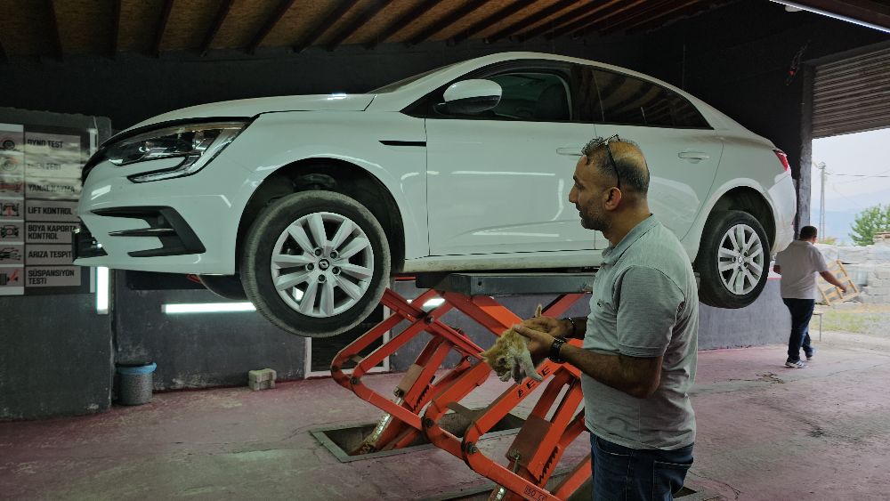 Tatvan'dan ayrıldıktan yaklaşık 30 kilometre sonra araçtan gelen kedi sesini fark eden ikisi öğretmen üç arkadaş, aracı yol kenarına çekti. Kendi imkanlarıyla kedinin yerini bulmaya çalışan şahıslar, en yakın sanayiye giderek yardım istedi. Aracın kaldırılmasıyla yavru bir kedinin alt bölümdeki boşluklara sıkıştığı tespit edildi. Ustaların dikkatli müdahalesiyle kurtarılan kedi, aracın içine alınarak ekmek ve suyla beslendi.