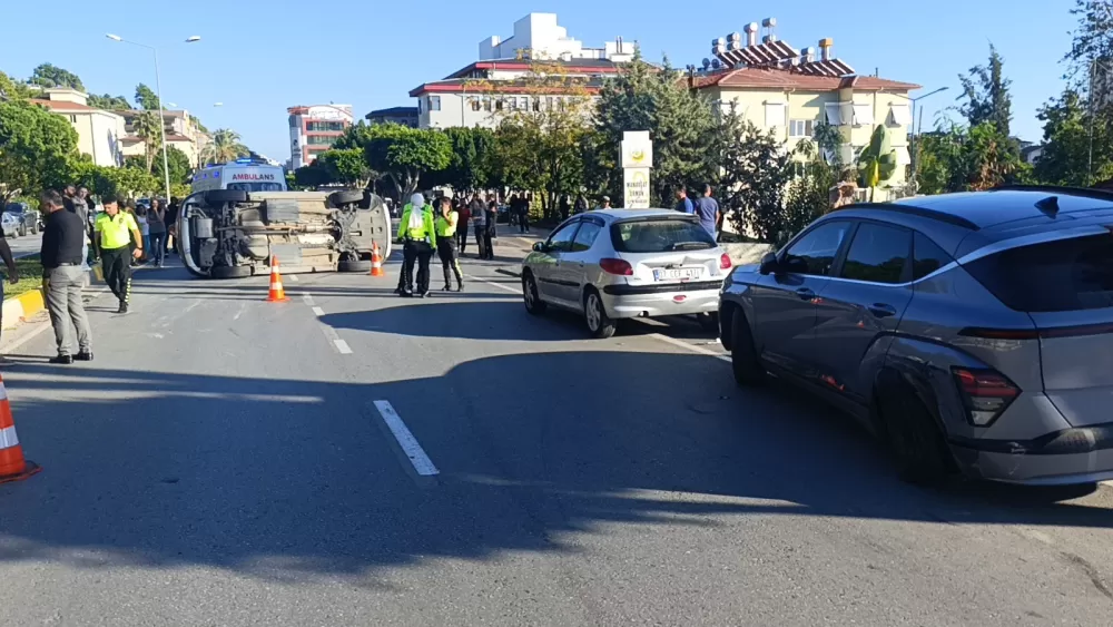 Antalya'nın Manavgat ilçesinde meydana gelen kazada yol kenarında park halindeki araçlara çarpıp devrilen otomobilin sürücüsü yaralandı.