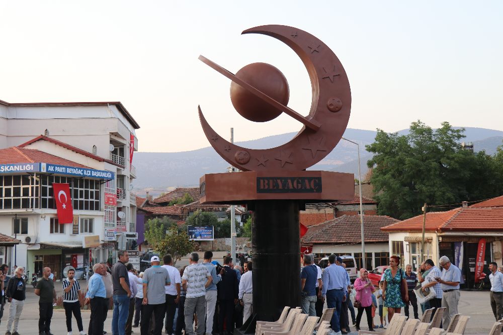Topuklu Yaylasında düzenlenen "Ethem Hoca ile Gökyüzü Gözlem Etkinliği" kapsamında gökyüzünün büyüsüne tanıklık etmek için bir araya geldiklerini belirten Beyağaç Belediye Başkanı Sezayi Pütün, "Bu yıl gökyüzü gözlem etkinliğimizi daha da anlamlı kılan özel bir sembolü ilçemize kazandırmış olmanın gururunu yaşıyoruz. İlçemizin kalbinde yükselen ‘Gökyüzü Anıtı’, yalnızca estetik bir yapı değil; aynı zamanda kültürümüzün, tarihimizin ve bilimsel bakışımızın güçlü bir yansımasıdır. Sekizgen kaidesi, Selçuklu sanatında önemli bir yere sahip olan sekiz köşeli yıldızı simgelerken, aynı zamanda yer ile gök arasındaki kozmik dengeye vurgu yapmaktadır. 301 santimetre yüksekliğinde ve 270 santimetre genişliğindeki hilal formu, toplamda 571 sayısıyla Peygamber Efendimizin doğum yılına işaret etmektedir. Hilalin iki cephesine yerleştirilen 16 yıldız, Türk tarihindeki 16 büyük Türk devletini temsil etmektedir. Anıtın üst bölümünde yer alan Ay, Yıldızlar ve Satürn gezegeni, gök bilimi ile kültürel hafızamızı bir araya getirerek bu eseri sadece bir yapı olmaktan çıkarıp anlam yüklü bir simgeye dönüştürmektedir. Beyağaç’ta gökyüzüne iz bırakmak isteyen herkesi bu eşsiz eseri görmeye davet ediyoruz" dedi.
